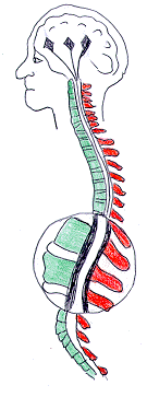 Þegar efri hreyfitaugungur deyr, skilur hann eftir sig örótt og hart svæði eða hersli (sclerose).